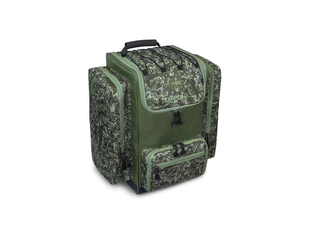 Na obou stranách jsou umístěny dvě objemné kapsy a vepředu se nachází jedna menší dvoukapsa. Devizou je také stahovatelný gumový popruh na vrchu batohu, který umožňuje upevnění například bundy, mikiny, či menší srolovatelné podložky. CARPER je vybaven kvalitními zipy, které jsou opatřeny plastovými taháčky s logem značky Delphin.