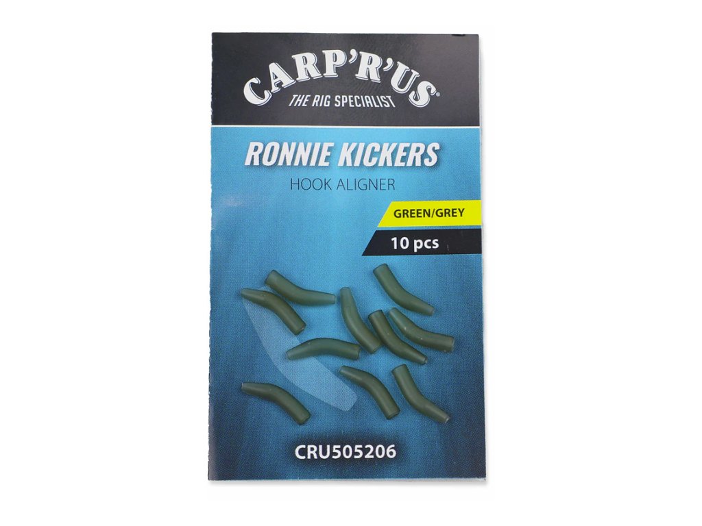 Speciální rovnátka Carp´R´Us Ronnie Kickers jsou ideální pro výrobu ronnie rigů. Nahrazují smršťovací hadičku, která se přetahuje přes háček a spinner obratlík.