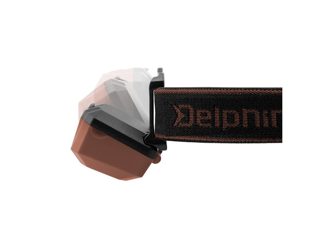 Samotná lampa je upevněna na pevném elastickém popruhu s efektním logem Delphin a názvem RGW PRO. Lampu lze podle potřeby polohovat směrem nahoru a dolů. Ať už jste rybář, myslivec nebo outdoorový nadšenec, Delphin RGW PRO UC nepochybně uspokojí vaše nároky na kvalitní čelovku s množstvím moderních funkcí.
