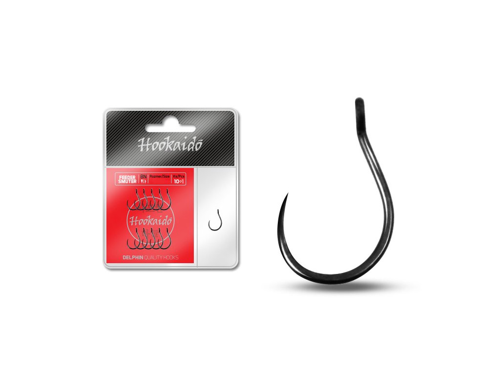 Delphin HKD Feeder SMUTER je háček pro lov technikou method feeder. Ideální ve spojení s peletami, kukuřicí, miniboilie a dalšími nástrahami umístěnými na vlasové montáži mimo háček. Zaoblený tvar velmi dobře drží rybu a i když je bez protihrotu, nemusíte mít nejmenší obavy. Povrch je navíc potažen vrstvou TEFCON-u.
