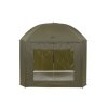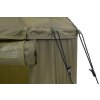 Kompletně zakrytý deštník čtvercového tvaru s obřími rozměry. Lze do něj umístit dvě velká rybářská lehátka. Rozměrům deštníku je plně přizpůsobena jeho konstrukce a použité materiály. Kostra je vyrobena z pevných a pružných laminátových žeber, které kromě vysoké tuhosti a stability zajišťují i velkou odolnost. Tu oceníte zejména při silném větru, kdy by standardní drátěná žebra byla zdeformována či zcela zničena. Kvalitní nylonový plášť nabízí velmi nízkou hmotnost, nekompromisní vodní sloupec 8000mm a kompletně podlepené švy. Bočnice je po celém obvodu připevněna robustním zipem, krytým okapničkou. Přední panel s rozměrným oknem lze snadno rozepnout a srolovat nahoru. Ve větrném počasí je možné deštník stabilizovat pomocí čtyř kotvících lanek. Součástí dodávky je i sada plnohodnotných bivakových kolíků pro perfektní ukotvení i v náročných podmínkách. Skvělým doplňkem tohoto deštníku je unikátní stabilizační sada do extrémních podmínek dodávaná samostatně.