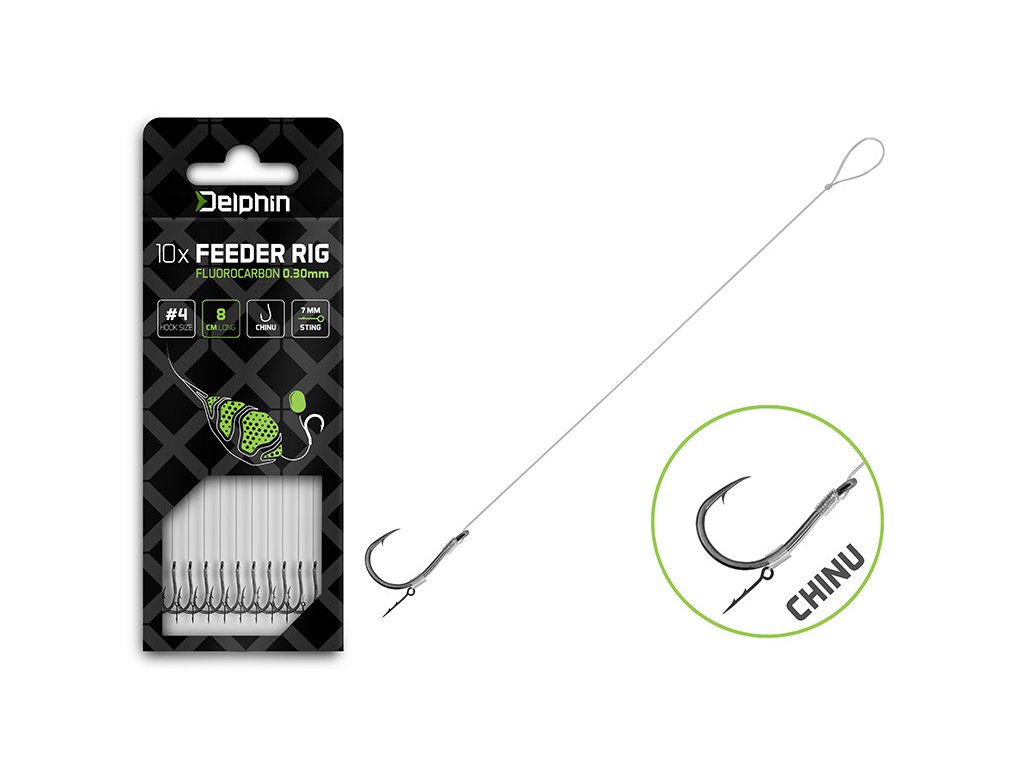 Návazec je zhotoven z kvalitního fluorokarbonu, který je pod vodní hladinou pro ryby téměř neviditelný. Kromě nenápadnosti vyniká i vysokou odolností vůči oděru, což z něj činí spolehlivou volbu i při lovu v blízkosti překážek či na tvrdém dně. O spolehlivý zásek se starají ověřené modely háčků Turner a Chinu. Jejich specifický tvar a výjimečná ostrost zaručují bezpečné zdolávání a minimalizují riziko ztráty ryby během souboje.