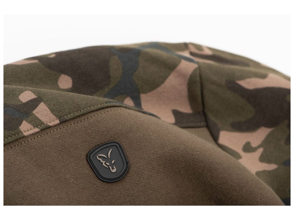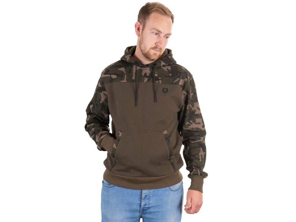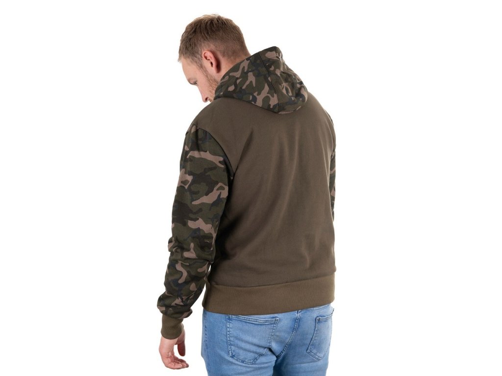 Mikina khaki s Fox Camo rukávy, kapucí a ramenními panely.