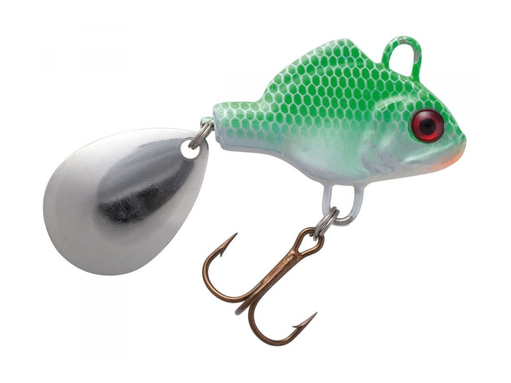 Fantastická olověná malá rybka typu tail spinner s rotačním plíškem na ocásku s velmi realistickým pohybem. Tato nástraha provokuje k záběru velké množství druhů ryb. Díky její relativně velké hmotnosti může penetrovat i hlubší partie vody při hledání candátů a okounů. Při rychlém vedení jde o dokonalou nástrahu na pstruhy a boleny v mělčí vrstvě vody.