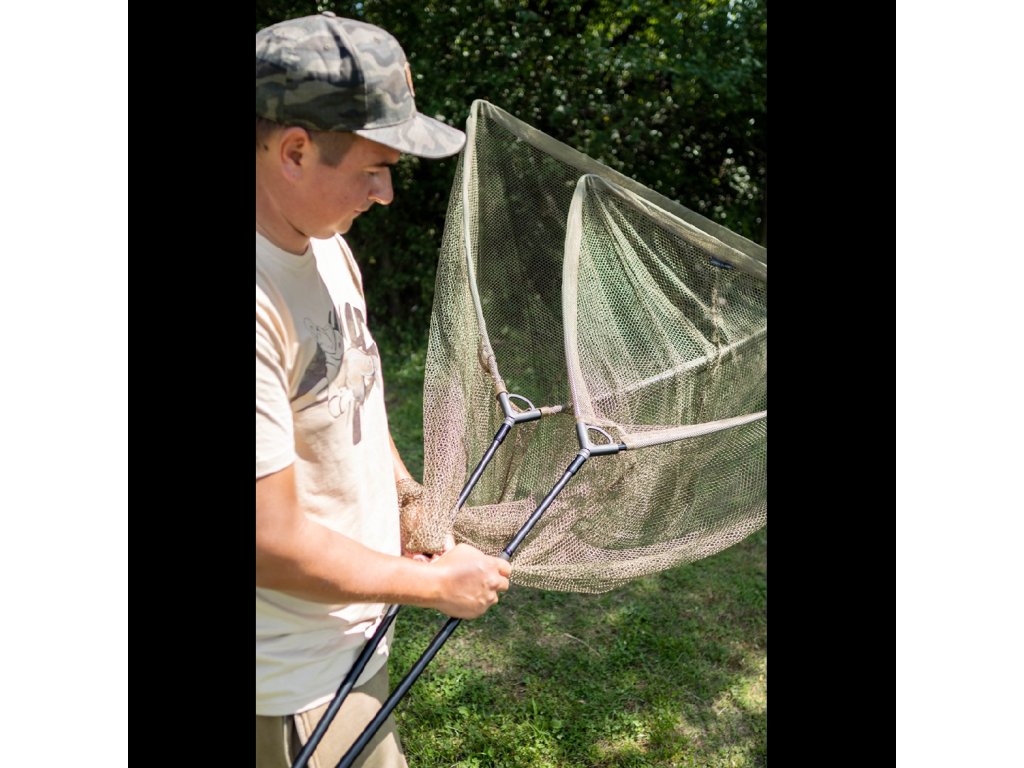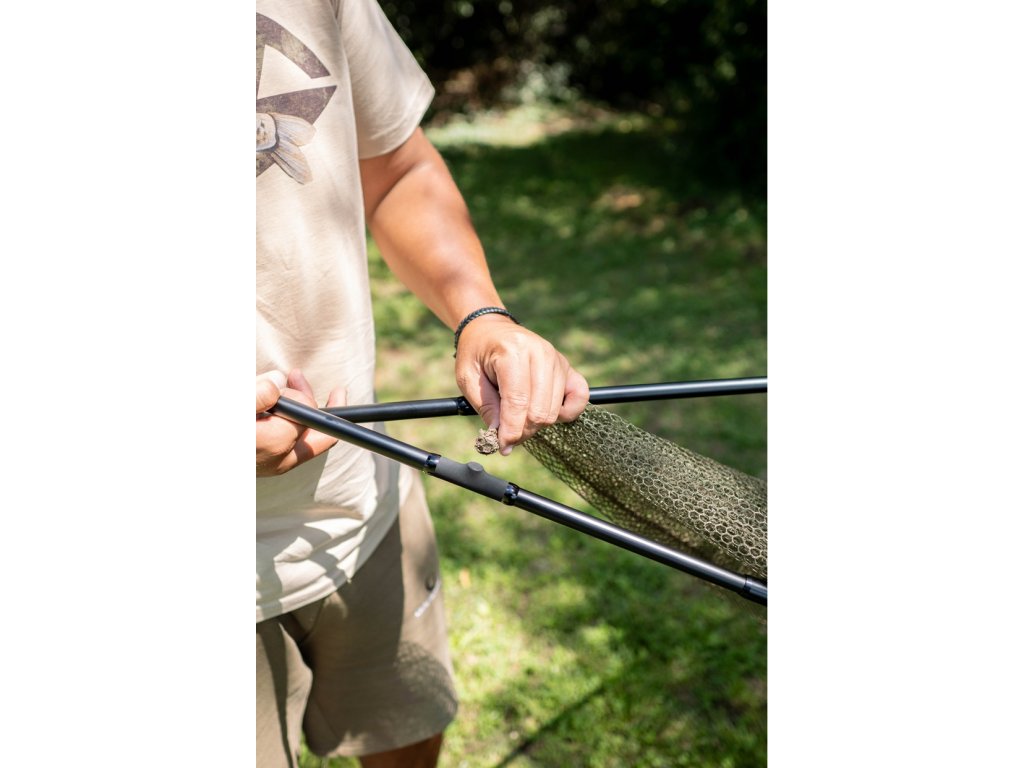 Středně velký kaprový podběrák robustní konstrukce s dvoudílnou rukojetí, který je osazen jemnou a pro rybu šetrnou síťkou, která je ve spodní části osazena magnetem pro snadné zaklipování.
