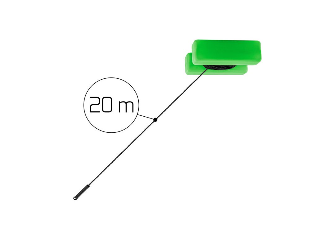 H-bójka je vyrobena z velmi odolného plastu výrazné světle zelené barvy, díky čemuž ji na vodní hladině bez problémů zpozorujete iz větší dálky. Je vybavena extra pevným, černým provazem, který je na konci opatřen obratlíkem s rychlovýměnným klipem na olovo. To umožňuje použití takového tvaru a hmotnosti olova, jaké si daná situace vyžaduje.