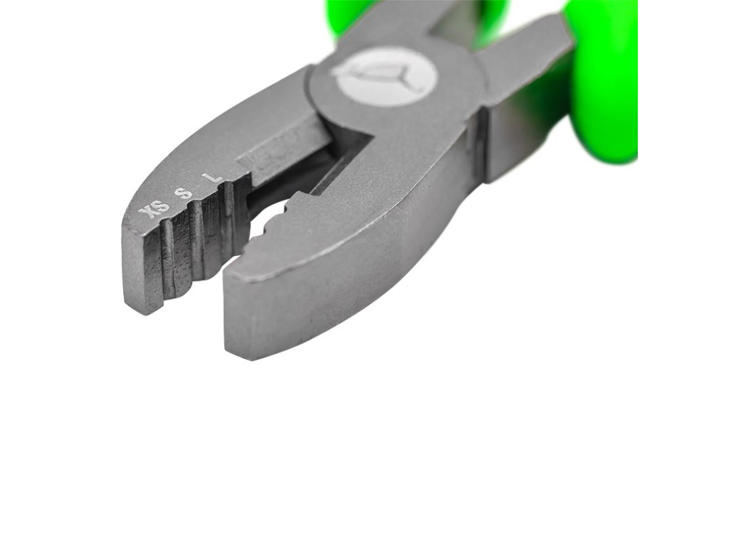 Pokud využíváte Krimp set je vždy důležité, aby vše bylo ruku v ruce s použitými materiály tak aby byla spojení krimpů s vlascem co možná nejpevnější a přitom nebyla narušena nosnost použitého materiálu, My máme řešení a tím je sada Mini Krimp, je navržena tak aby se dala použit s našimi třemi velikostmi krimpů, které prodáváme. čelisti jsou označeny XS, S a L pro označení krimpů které mají být použity. Vždy dbejte na to aby jste zvolili vhodný návazcový materiál tak aby jste dosáhli co možná nejsilnějšího spojení. Jsou vyrobeny z měkké oceli s pogumovanými rukojeťmi, které vám umožňují dobré uchopení a dopomůže správnému vytvoření tlaku na krimp , navíc má v čelistech dvě ostré hrany na odstřihnutí vlasce při finální úpravě vaší montáže. Nástroj Mini Krimp Tool je velmi kompaktní, takže se snadno vejde do vašeho Tackle Boxu , ovšem stále vám umožňuje vytvoření dokonalých montáží a toho nejpevnějšího spoje.
