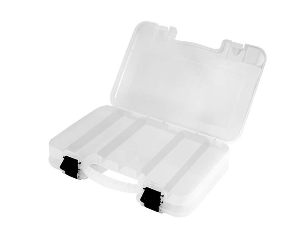 TBX Duo 298-12P Clip je multifunkčná krabička určená na uloženie rybárskeho príslušenstva. Vyrobená je z transparentného plastu, takže máte vždy prehľad o uložených veciach vo vnútri krabičky. DUO znamená dva oddelené úložné priestory a to jeden z vrchnej a druhý zo spodnej časti s dômyselným otváraním. Vybavená je praktickými externými klipmi z čierneho plastu. Má zabudovanú pevnú rúčku pre jednoduchší transport.