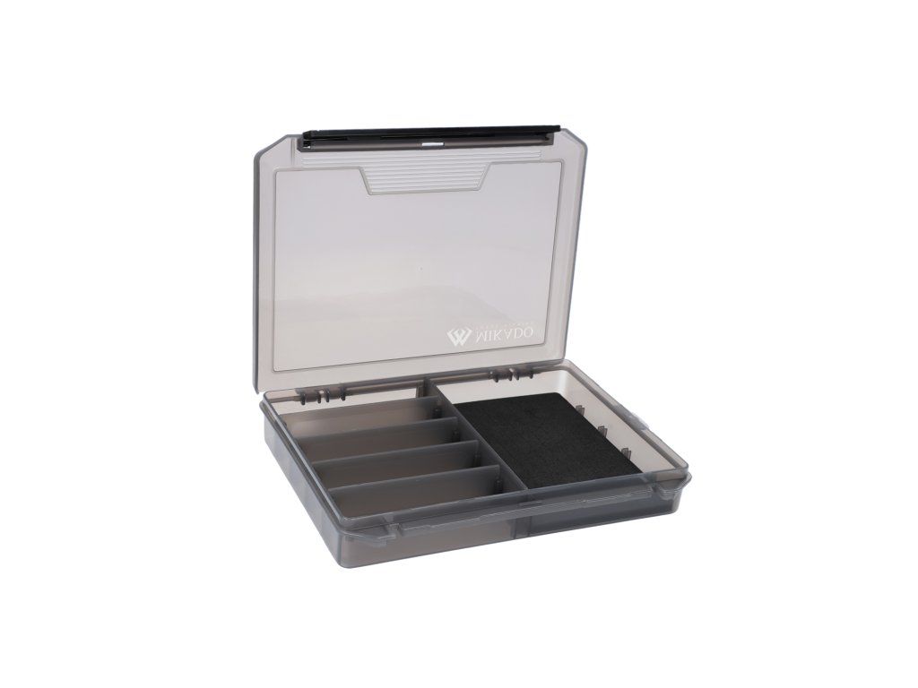 Krabička na příslušenství s přihrádkou opatřenou speciálně vyříznutou pěnou pro uložení rybářských nástrah a háčků. Kromě toho má několik klasických, nastavitelných přihrádek bez pěny.
