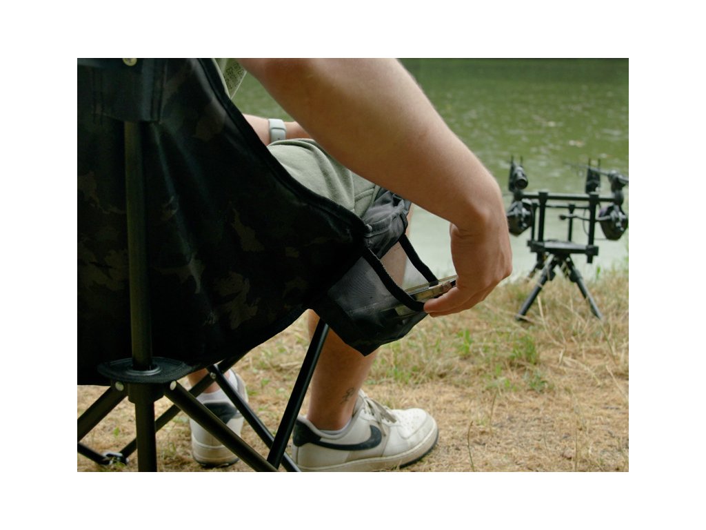 Na boku křesla se nachází praktická kapsa na odložení oblíbeného nápoje, telefonu nebo drobného příslušenství. Pro pohodlnou manipulaci během přenášení je FOLDIX vybaven praktickým úchytem ale i suchými zipy, které slouží k zafixování křesla během transportu.