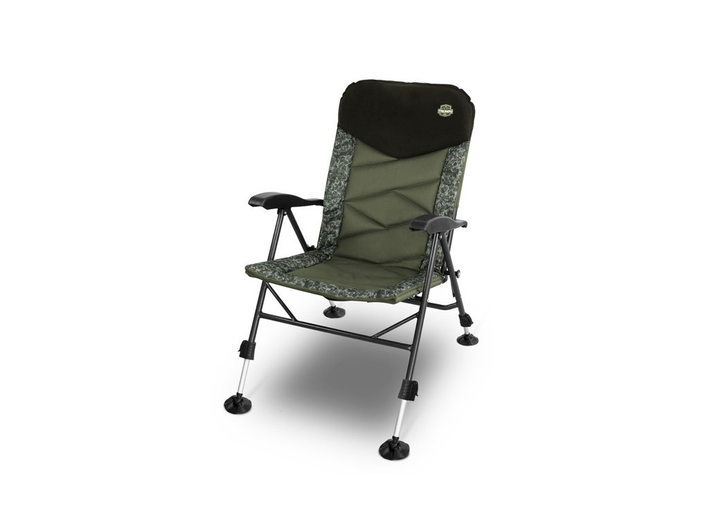 Mimo jiné křeslo jistě upoutá i svým provedením, kde jsme při jeho designu použili několik kombinací barev. Barevné kombinace odstínů zelené a camou jsou pečlivě vybírány tak, aby křeslo dokonale splynulo s okolní přírodou.