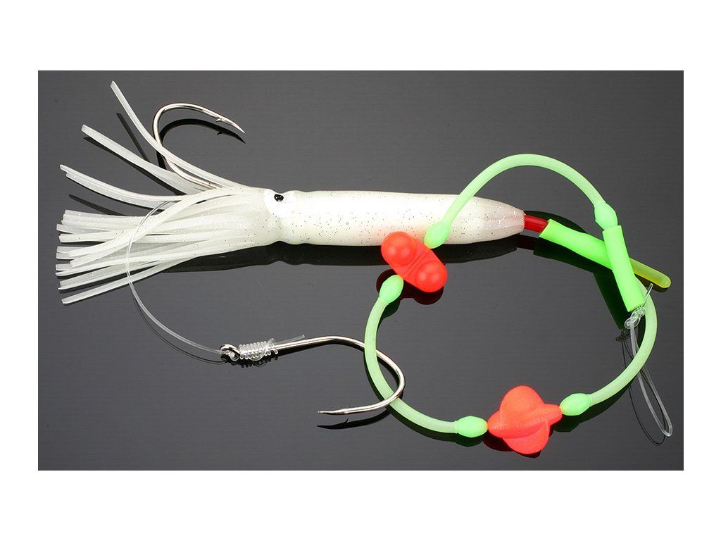 Tato montáž s jednou chobotnicí a dvěma háčky je ideální pro lov na velké filety, nebo celé ryby. Skvěle se chová na velkých hloubkách. Loví velké ryby. Vhodné pro lov velkých: halibutů, tresek, mníků.