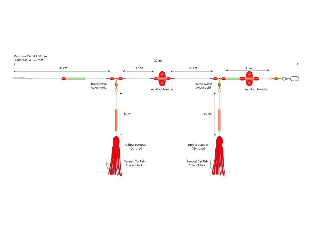 Montáž konstruovaná s důrazem na každý detail - jeho jednotlivé součásti, rolničky a červené chobotnice účinně vábí vlkouše a provokují je k útoku. Montáž je nejúčinnější na hloubkách o 5 - 50 m.