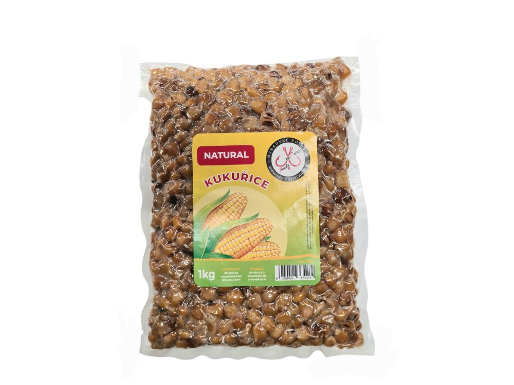 Kukuřice vařená vakuovaná je vyrobena z výběru z těch nejkvalitnějších kukuřičných zrn. Výroba spočívá v tepelné úpravě a přidáním minimálního množství šetrných konzervantů pro dodržení přirozené chutě i vůně pro ryby, které naláká na lovné místo. Ponecháváme přírodní zabarvení zrn ( u příchuti NATURAL), která jsou přirozená pro ryby a neškodí vodě. Je možné ji vmíchat i do vnadících směsí, methodmixu či použít přímo na háček jako nástrahu. Kukuřice je určena pro celou lovnou sezónu. Doporučené skladování originálního balení je do 20 °C a spotřeba do 12 měsíců od zakoupení.