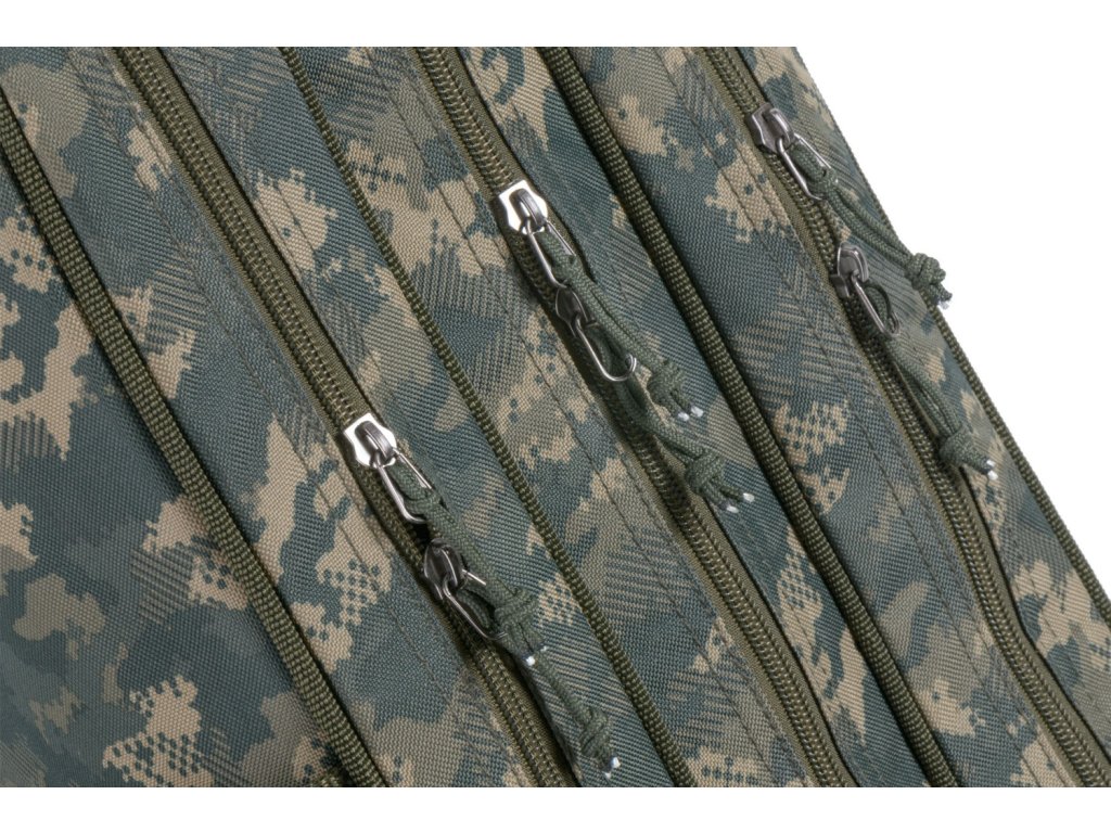 Přepracované série tříkomorových obalů na pruty v různých délkách pro přepravu teleskopic¬kých prutů nebo dělených kaprových či feederových prutů ze 100% nepromokavého materiálu v atraktivním maskovacím designu, odolného proti protržení.