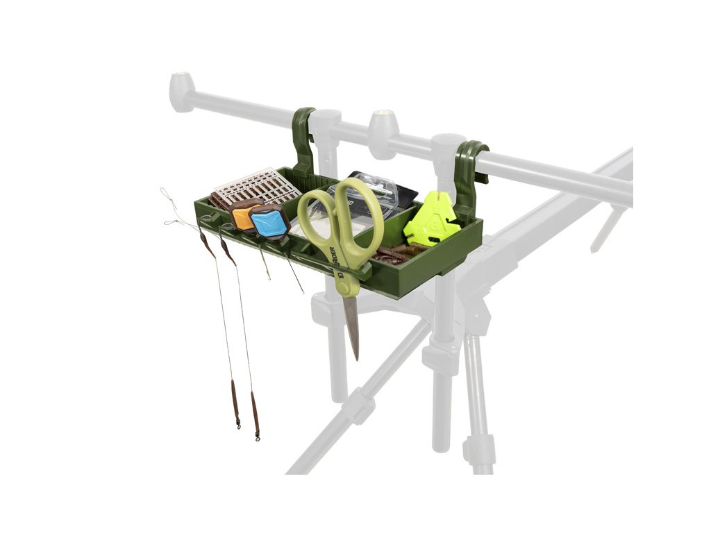 Praktická a užitečná polička, důmyslně navržená našimi designéry, kterou ocení každý rybář vlastnící rodpod, tripod, případně samostatné hrazdy na vidličkách.