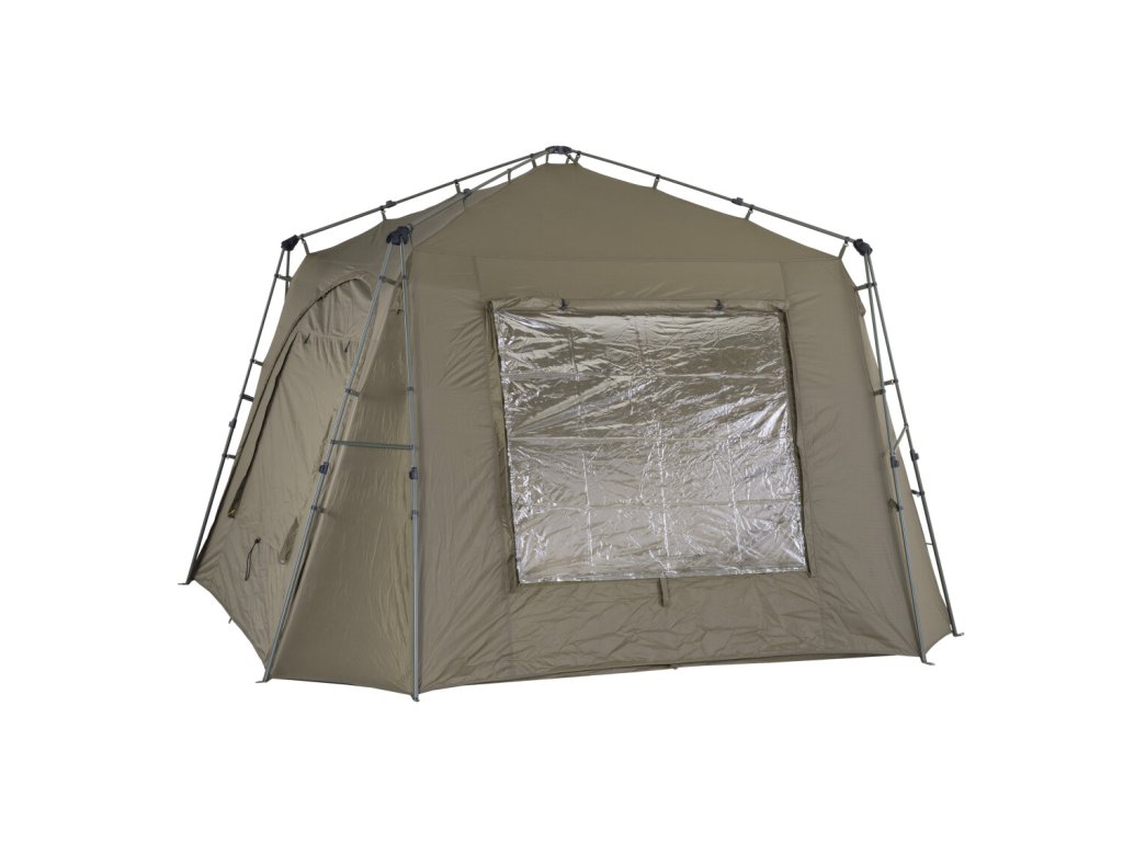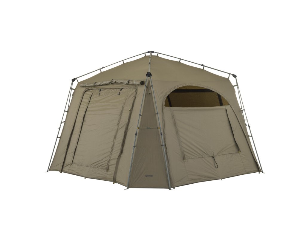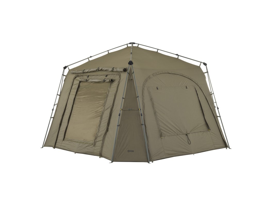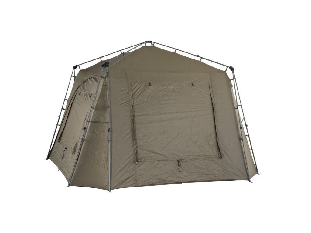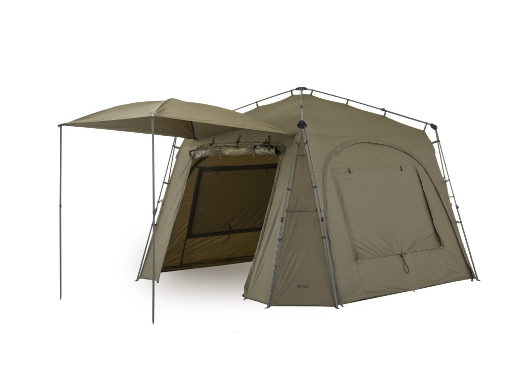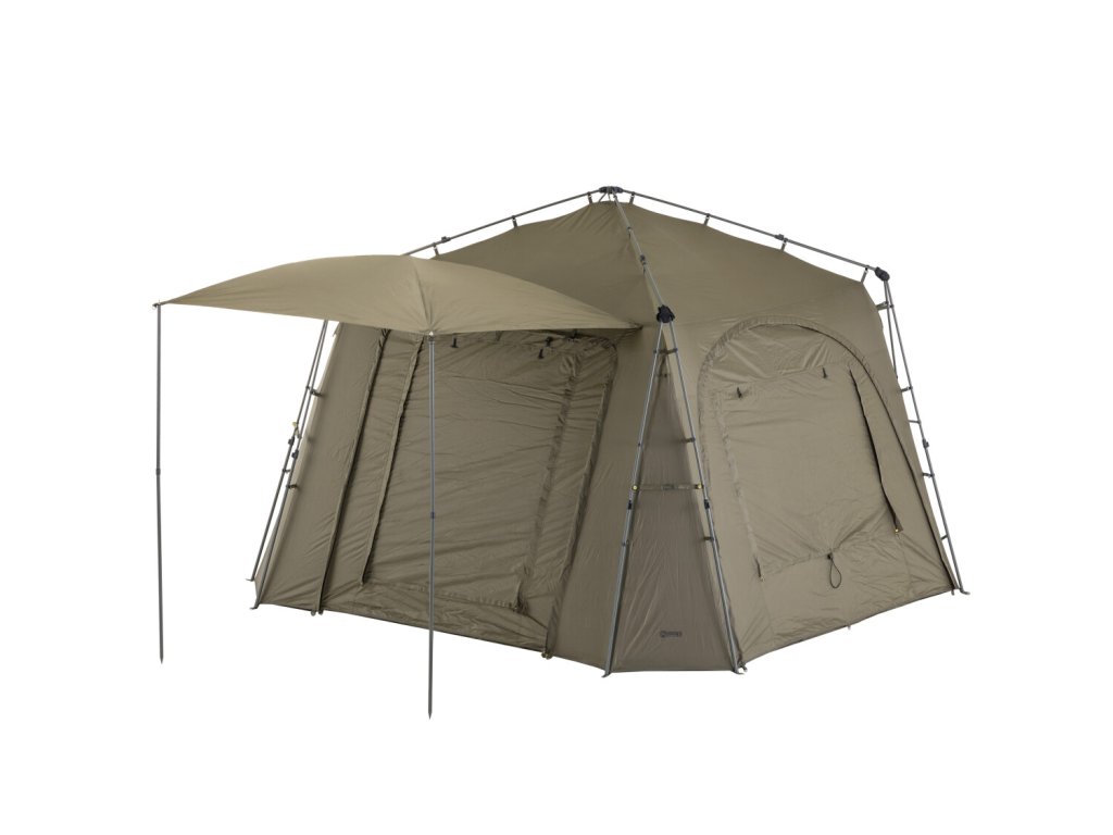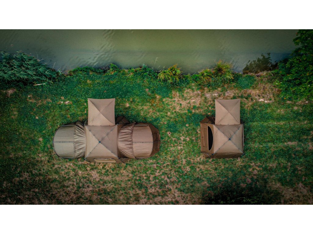 - K přístřešku Base Camp lze pomocí Bivvy Connection Kitu připojit jakýkoliv bivak nebo brolly na trhu