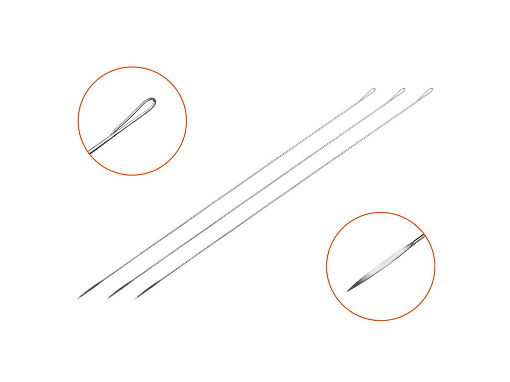 Ve výbavě každého lovce dravých ryb nesmí chybět prošívací jehla. Speciální tvar hrotu společně s tloušťkou drátu jehly umožní bezproblémové našití nástražní rybky přímo pod kůži. Díky upravené tloušťce jehla neztrácí svoji pevnost, ale zároveň je šetrná vůči nástraze. Jehla je ukončena očkem, do kterého můžete uchytit lanko a bez problémů si nástrahu připravíte na lov. Mysleli jsme také na ztrátu jehly, a proto jsme se rozhodli do balení umístit tři kusy pro každý případ.