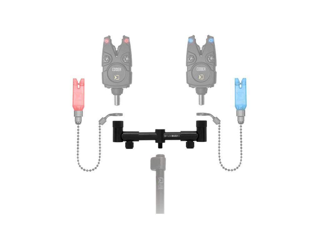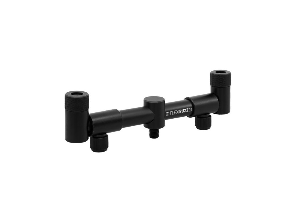 Výsuvná ramena jsou ze spodní části seříznuta do roviny, takže po utažení pojistných šroubů perfektně drží na místě a nepřetáčejí se. Vrchní závity obsahují matice umožňující utažení každého typu signalizátoru nebo rohatinek přesně do roviny s hrazdou. FlexiBUZZ je vyrobena z pevného hliníku, s odolnou povrchovou úpravou, které bylo dosaženo pomocí práškové černé barvy.