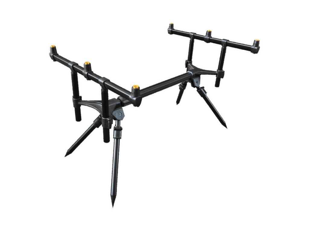 Rod Pod System Bruce Fortress 3 lze sestavit během několika sekund. Je lehký a stabilní, má čtyři nastavitelné nohy a nastavitelné výškové tyče, které se hodí pro jakékoli místo k rybaření. Stačí už jen přidat indikátory záběru nebo podložky pod pruty a můžete rybařit.