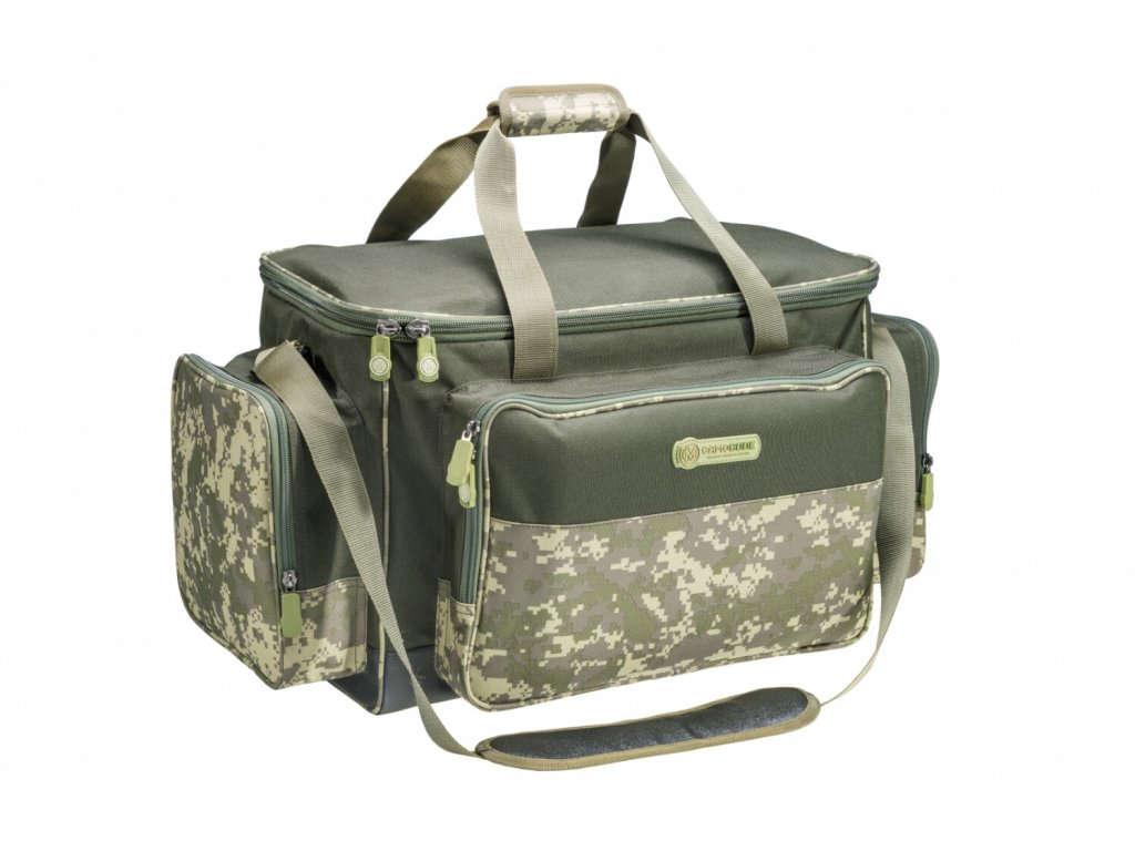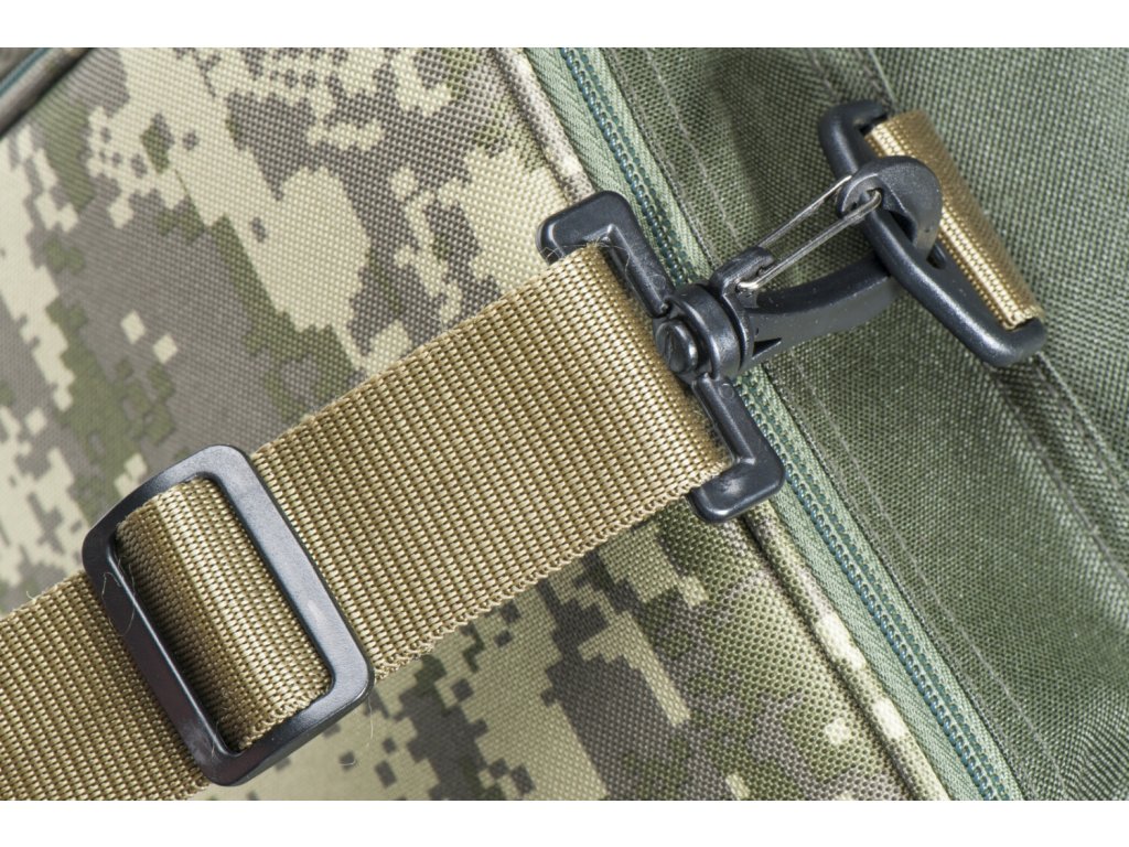 Přepravní taška střední velikosti s atraktivním designem série CamoCODE. Je vybavena zesíleným dnem, prostornými vnějšími kapsami, pevnými transportními uchy a polstrovaným popruhem přes rameno pro pohodlné nošení. Na tašce jsou použity pevnostní zipy s dlouhou životností s pogumovanými táhly MIVARDI a velmi kvalitní přezky.