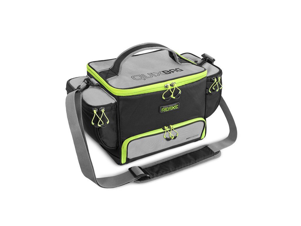 Tašku QuixBAG můžete nosit za praktickou rukojeť na vrchní části, nebo za popruh, který naleznete automaticky v balení. Taška je velmi kvalitně provedená a má masivní zipy s plastovými táhly. Designově je laděna tak, aby zapadla do série REAXE, tedy byla zvolena kombinace černé a šedé barvy s výraznými zelenými zipy a grafikou.