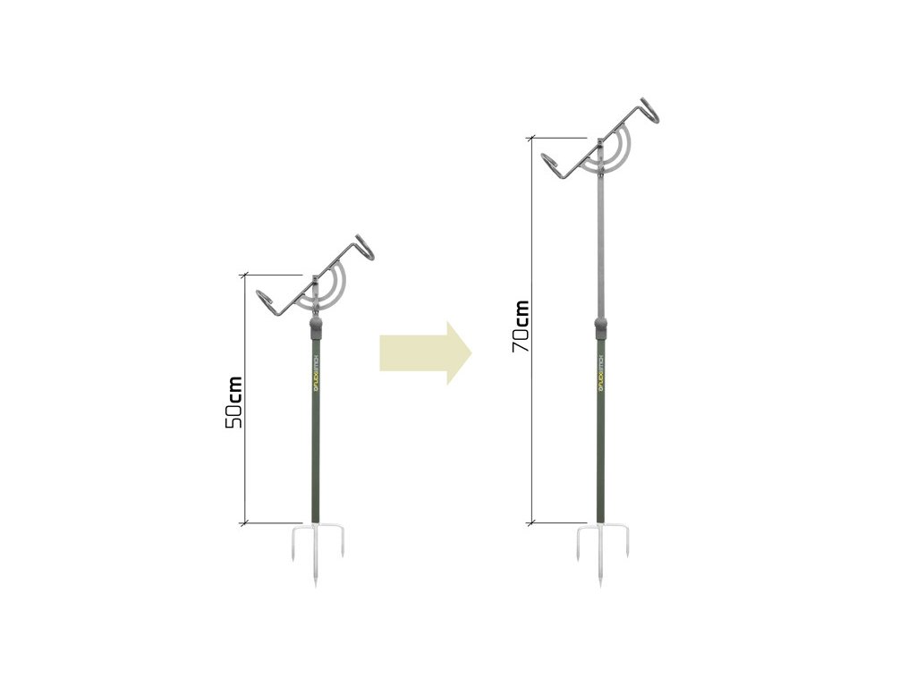 Univerzální teleskopický držák na prut, využitelný pro většinu rybolovných technik.