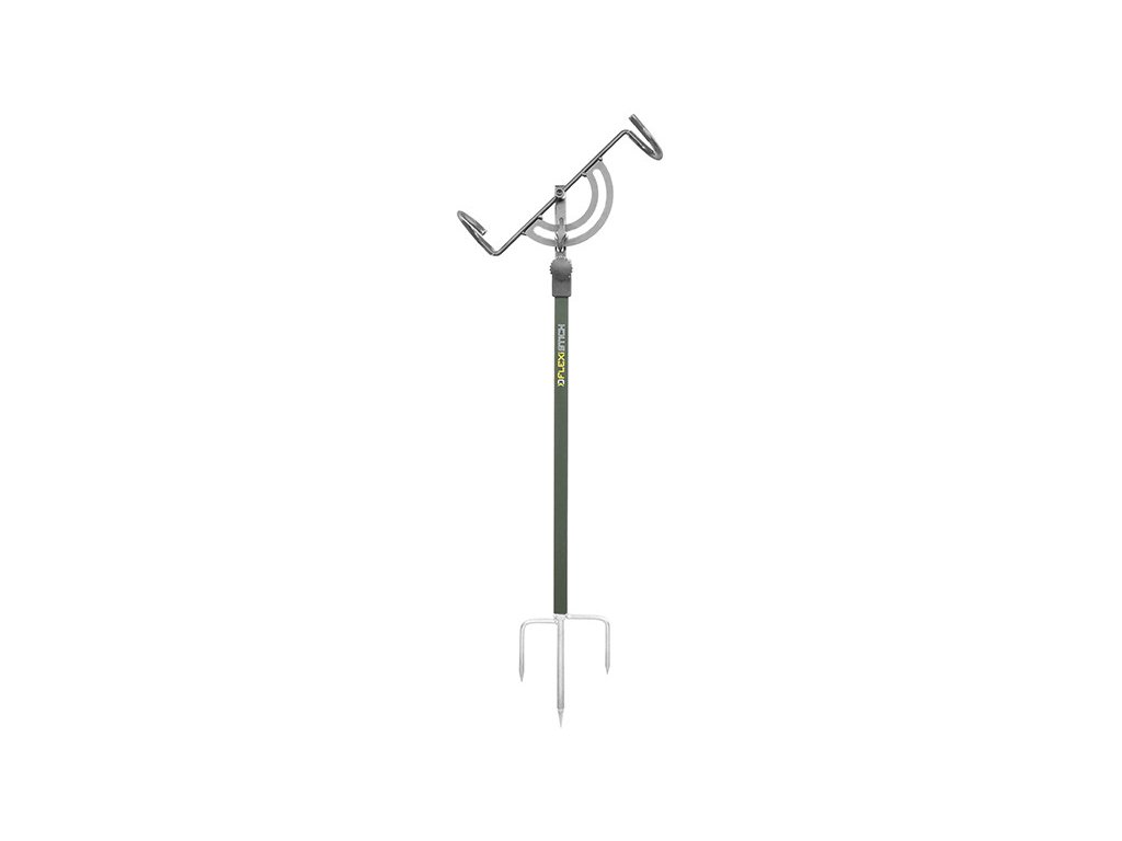 Zapíchnutí do země je umožněno pomocí mohutného kovového trojzubce, který je mimořádně pevný, snadno proniká i tvrdším povrchem a lze jej zašlápnout nohou, případně zabít gumovým kladivem do půdy. Navíc je celá spodní část upevněna pomocí závitu a lze ji odšroubovat a skladovat odděleně.