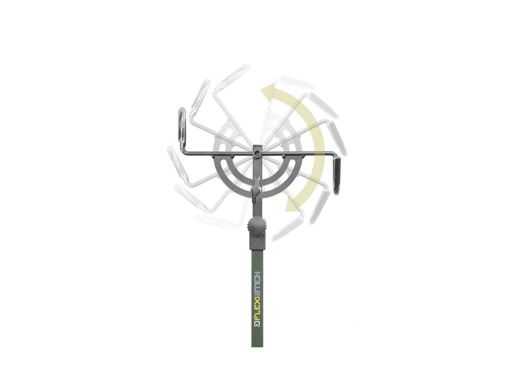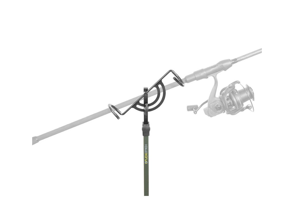 Vrchní část držící prut je vyformována z hrubého a pevného drátu černé barvy, který je specificky zahnutý tak, aby do něj bylo možné zasunout jakýkoli rybářský prut. Přední i zadní zahnutí je navíc potaženo gumou, což zamezí posouvání a zabrání poškození prutu. Držák je také polohovatelný pomocí kyvadlového mechanismu, takže si jej můžete nastavit do různých úhlů, ať už špičkou ke hladině, vodorovně nebo téměř kolmo vzhůru.
