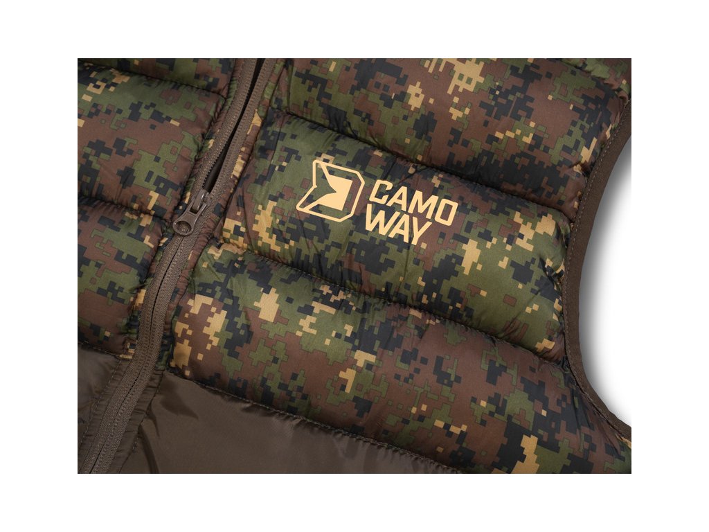 Zapínání je zajištěno pomocí kvalitního zipu, překrytého z vnější strany tkaninou, což zvyšuje jeho odolnost vůči vnějším podmínkám. Na obou stranách se nacházejí dostatečně velké kapsy na ruce nebo pro odložení potřebného příslušenství. Vesta CamoWAY disponuje také vyvýšeným límcem pro lepší překrytí krku a šíje při nízkých teplotách vzduchu.