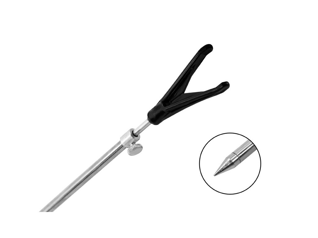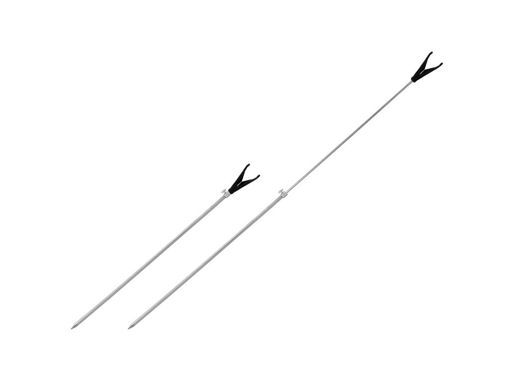 Velmi pevná, teleskopická, přední vidlička s držákem na prut. Vyrobena je z oceli, díky čemuž je výjimečně pevná. Vrchní část vidličky je pevně osazena držákem prutu. Požadovanou výšku nastavíte jednoduše pomocí závitu s maticí, která slouží k zafixování výšky rybářské vidličky.