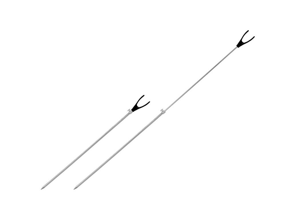 Velmi pevná, teleskopická, zadní vidlička s držákem na prut. Vyrobena je z oceli, díky čemuž je výjimečně pevná. Vrchní část rybářské vidličky je pevně osazena držákem prutu. Požadovanou výšku nastavíte jednoduše pomocí závitu s maticí, která slouží k zafixování výšky vidličky.