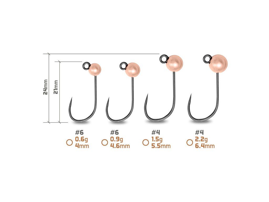 V naší nabídce naleznete různé průměry hlaviček, ze kterých si vyberete tu správnou možnost pro danou hloubku revíru a proudivost vody. Různé velikosti háčku umožňují nastražování různých druhů a velikostí umělých nástrah.