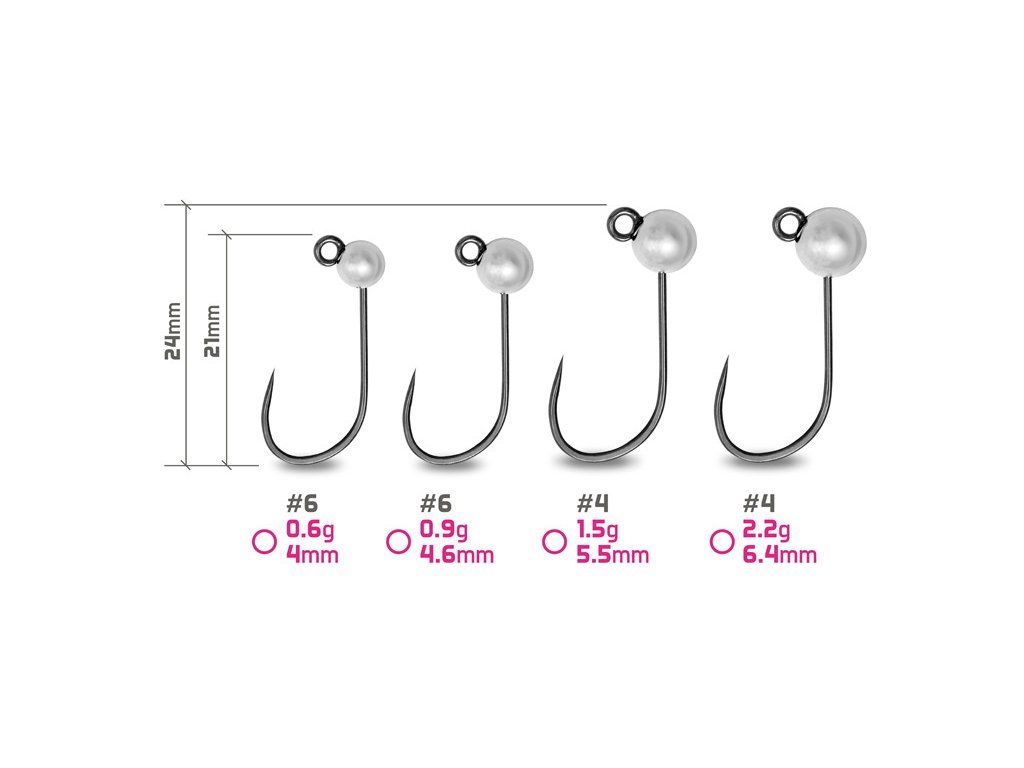 V naší nabídce naleznete různé průměry hlaviček, ze kterých si vyberete tu správnou možnost pro danou hloubku revíru a proudivost vody. Různé velikosti háčku umožňují nastražování různých druhů a velikostí umělých nástrah.
