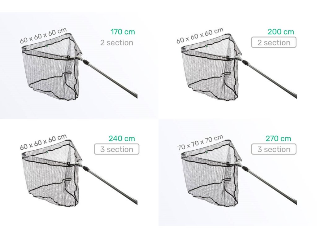 ZFISH Landing Net ZFX Rubber Mesh jsou klasické skládací podběráky s pogumovanou síťkou a teleskopickou tyčí. Tyto podběráky jsou kromě síťky a aretace vysunutí, vyrobené z hliníku, což nejen snižuje hmotnost, ale hlavně zvyšuje pevnost a životnost těchto podběráků. Předností je tedy nejen pevný hliníkový kříž, ale i samotná teleskopická hliníková tyč. Tato řada disponuje celkem 4-mi typy podběráků v pracovních délkách od 170-ti do 270-ti cm s hlavou 60x50 nebo 70x60cm. Samozřejmostí u těchto podběráků je pogumovaná síťka.
